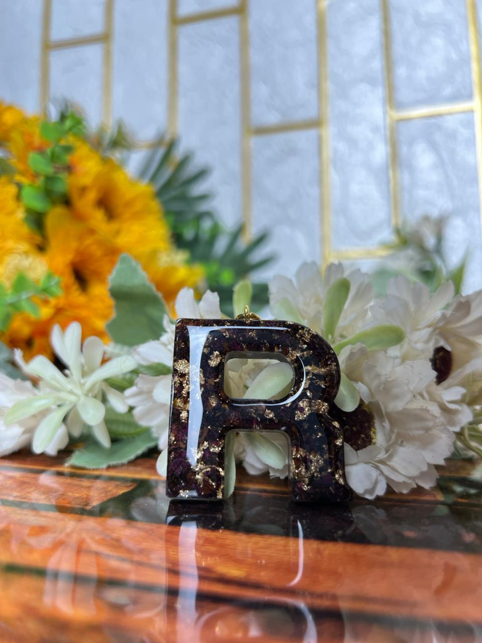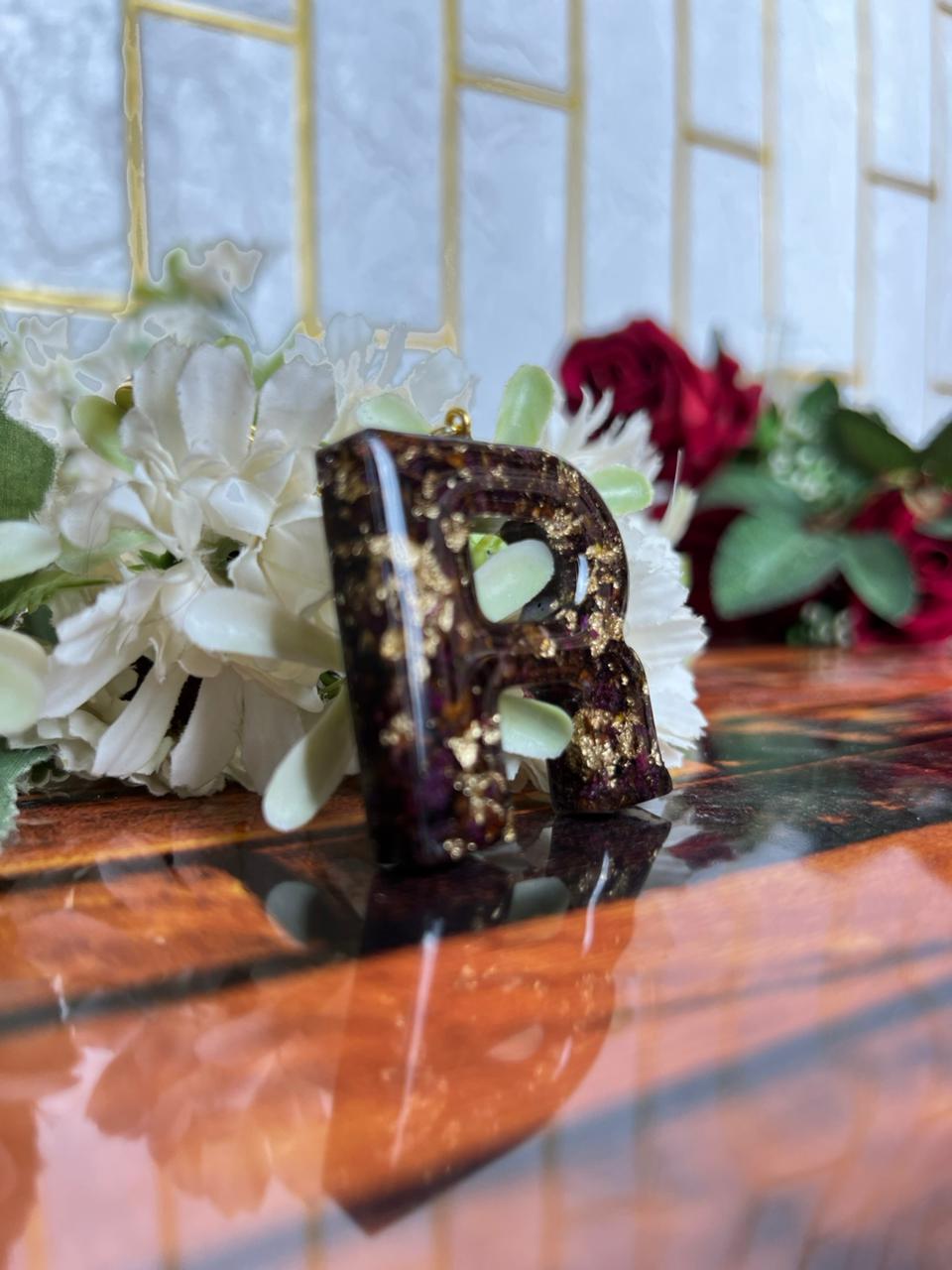 This Resin Preserved Letter “R” Keychain is a beautiful handmade product created with real dried flowers and shiny gold flakes. We make each keychain with clear premium resin, which gives it a smooth and glossy look.